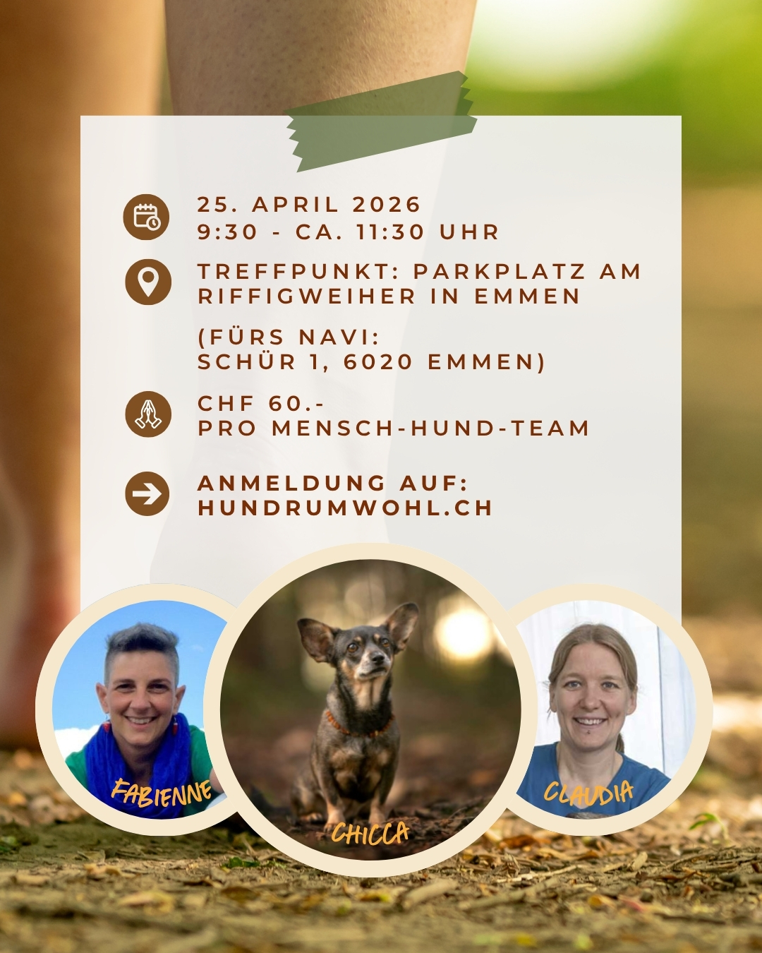Zeige grösseres Bild es gibt noch freie Plätze für den Erlebnis-Spaziergang claudia2026-04-13T17:19:37+00:0013. April 2026|Aktuelles, Rückblick| Diesen Beitrag teilen FacebookXWhatsAppE-Mail Ähnliche Beiträge Ferienmeldung und Termine 10 Jahre Selbstständigkeit Preisanpassungen zum 1. März 2025